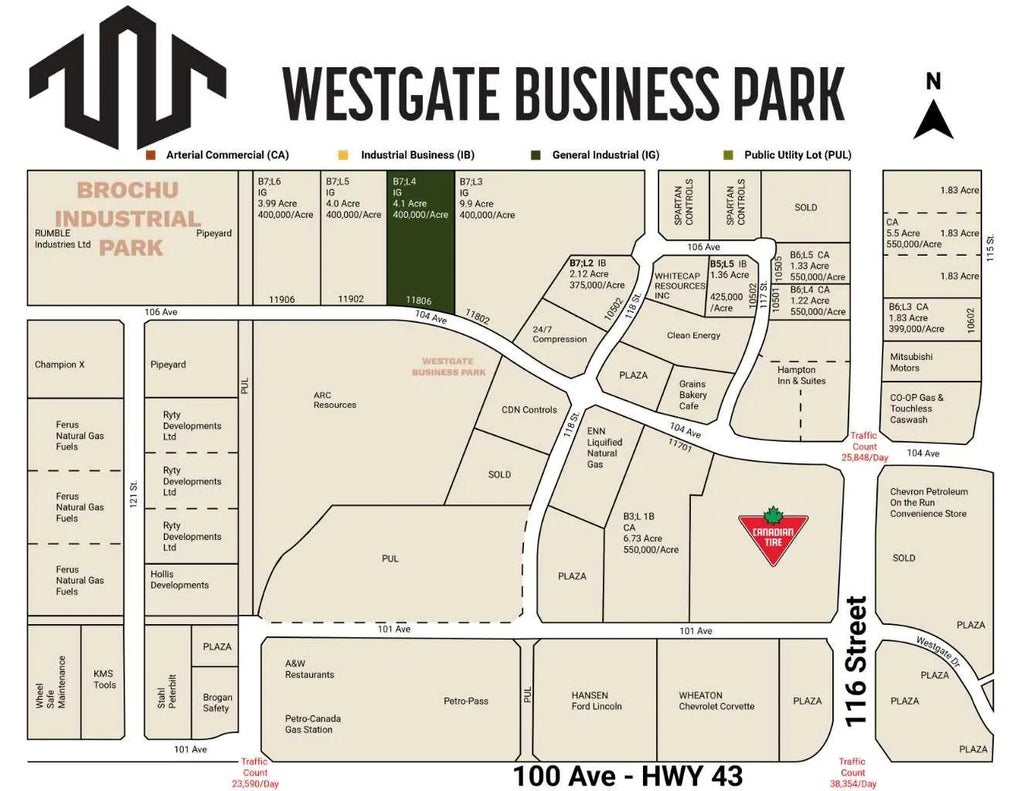 Final Phase of Westgate Business Park. Providing you access to the thriving economies in the oil & gas, agriculture, and forestry industries. This High visibility 4.01 - Acre Industrial lot offers direct access to all major transportation routes. Close to Grande Prairie Regional Airport and the new Grande Prairie Regional Hospital. Grande Prairie is the service hub for northern Alberta and British Columbia, with a demographic service area of more than 275,000 people. Limited premier lots still available and this is the ideal place to build your business. Wexford offers build-to-suit options to bring your design plans to life. Call you commercial REALTOR® today for more information.