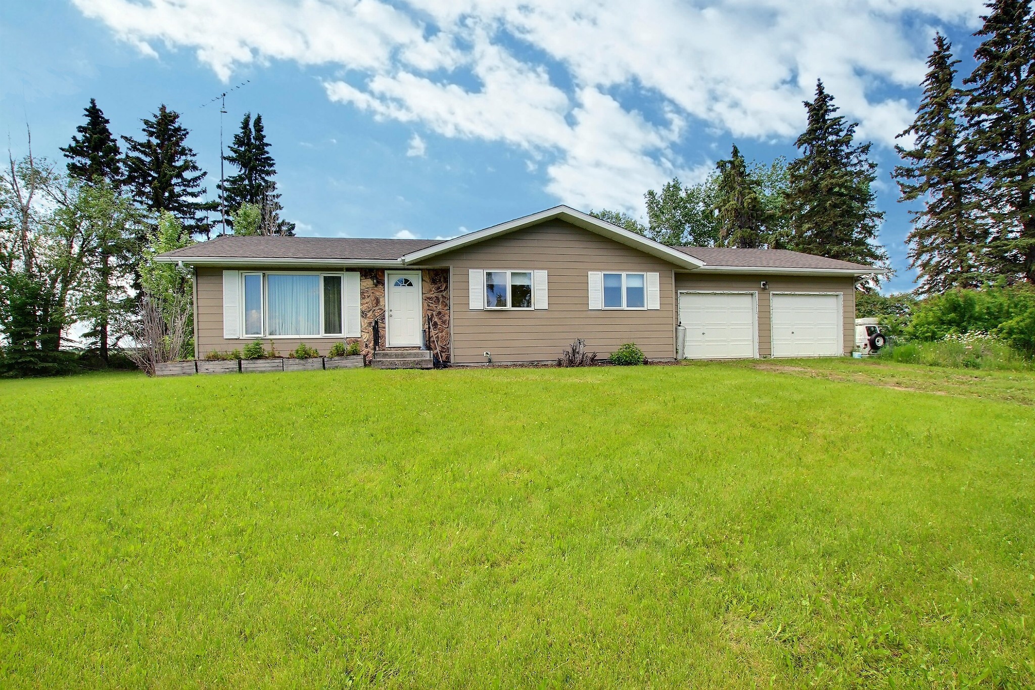 Have you ever wanted to own an acreage? Here is your chance! This 4-bedroom 1160 square ft. home is on 3.25 acres and is less than a 10-minute drive SW of Olds. The property features a pond in the NE corner of the property, and a small shop in the SW corner. There are plenty of trees, but also lots of space to add a building or for your family to run around and play outside. This home is waiting for you to add your touch! The main floor has the living room and kitchen on the left side of the home and down the hall are 3 bedrooms a full bath in the hallway and the primary bathroom has an ensuite which has a walk-through option past the main floor laundry into the kitchen. The basement has a long massive family room that can be used as a family/games area and a TV room. There is a 3rd bathroom and a large bedroom that can be used as a flex space.